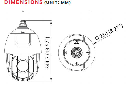 Dimension Φ210 mm x 344.7mm (Φ 8.27" x 13.57")